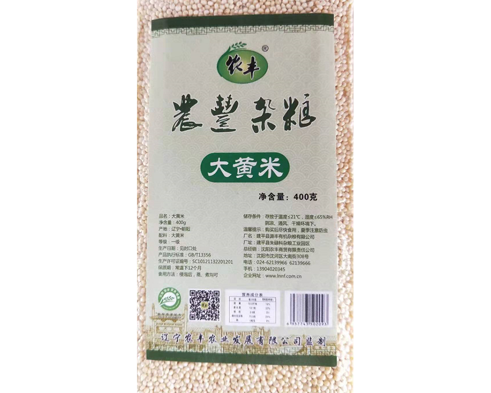 农丰大黄米;原产地辽宁省朝阳一带,富含清蛋白,球胆白,谷蛋白,醇溶蛋白,氨基酸,油麻,亚油酸,钙,铁,锌,硒,硫胺素,核黄素等,性,微寒,具有补脾止泻,和胃安神之功能。